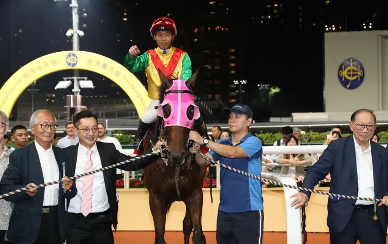 何泽尧在昨晚(10月15日)赛事中先于第六场策骑“飞龙在天”取胜,随后在第七场二班谷草1800米赛事中再凭“劲速威龙”夺魁,顺利斩获第六口连赢。“劲速威龙”自今年3月左前腿韧带受伤后,已休战七个月,今晚复出即取胜,显示马匹健康状况已完全恢复。