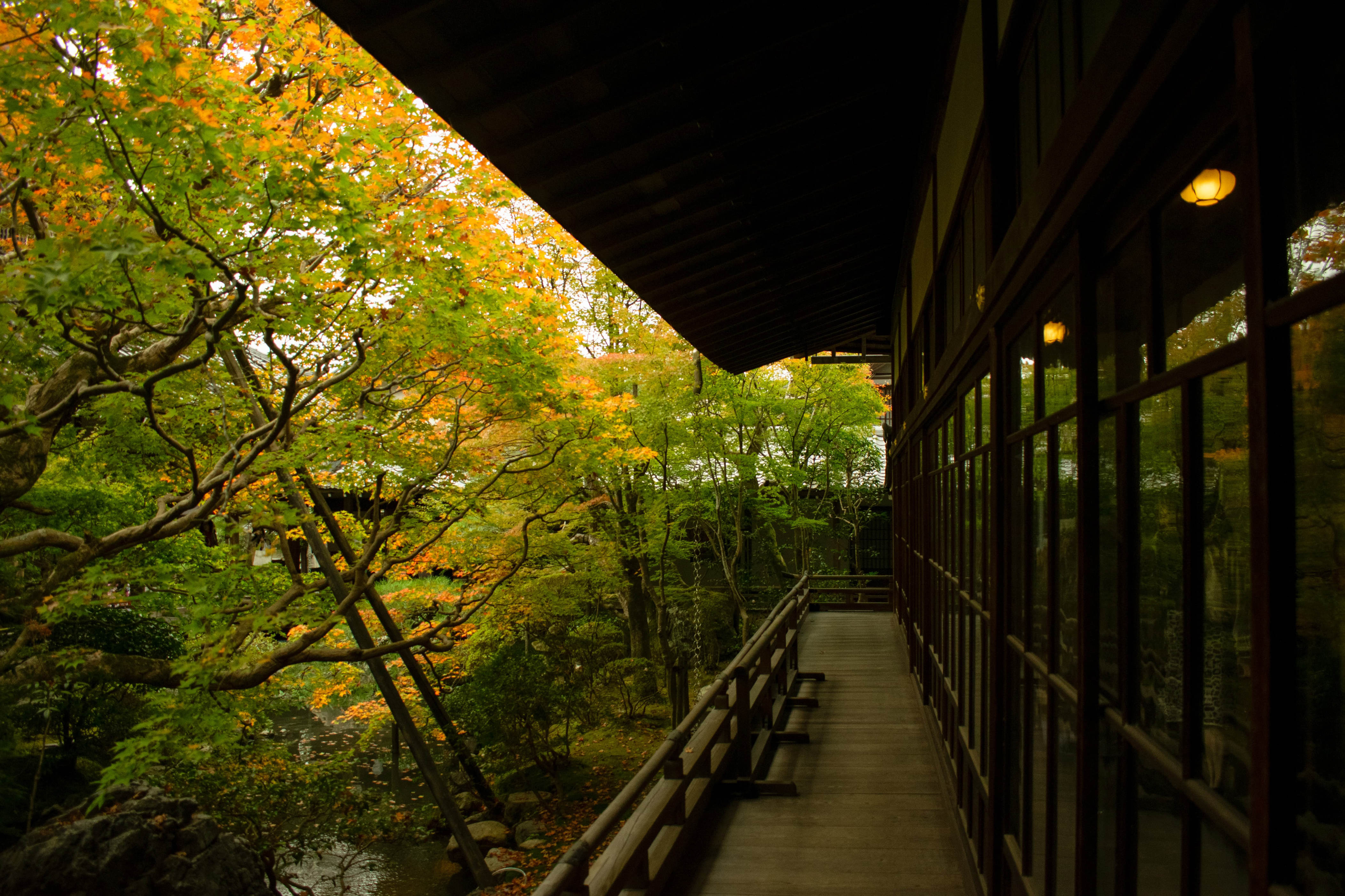 进入永观堂内需要脱鞋,现场会发塑料袋,要把鞋装在袋子里一路提着,所以整个路程都能听到塑料碰撞的窸窸窣窣声。庭院内很多地方禁止摄影,我们也就放下相机专心用眼睛来记录。时间过去太久已经不记得里面具体的构造、景色,留存下来的只有模糊的感觉,冰冷的木地板,层层叠叠的红枫,古朴又安静,在这里坐一下午不会是难熬的事情。也会忍不住想象夏天时满院的绿色会有多好看。